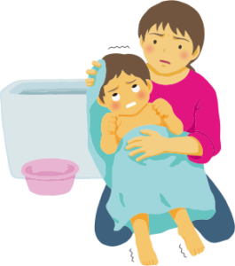 激しく泣いた時に親指が手のひらに沿うような形で硬直しました。この時お風呂に入っており、椅子に座らせていたのですが、急に後ろにこけました。足も硬直していたのかもしれません。5分近くはこの状態だったかもしれません。5分以上このような状態でいた場合、脳にどのような影響がありますか。